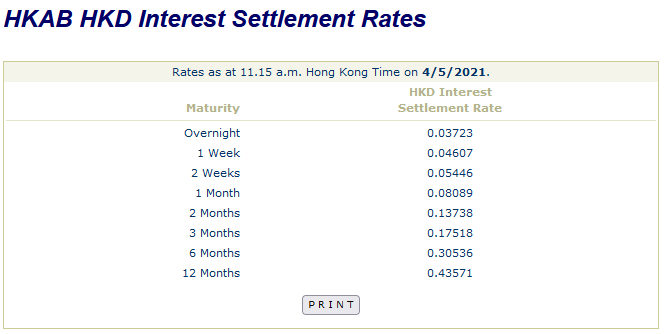 今日睇新聞話 HIBOR 創11年新低,1-month HIBOR 只係 0.08089% (資訊來自 香港銀行公會)
